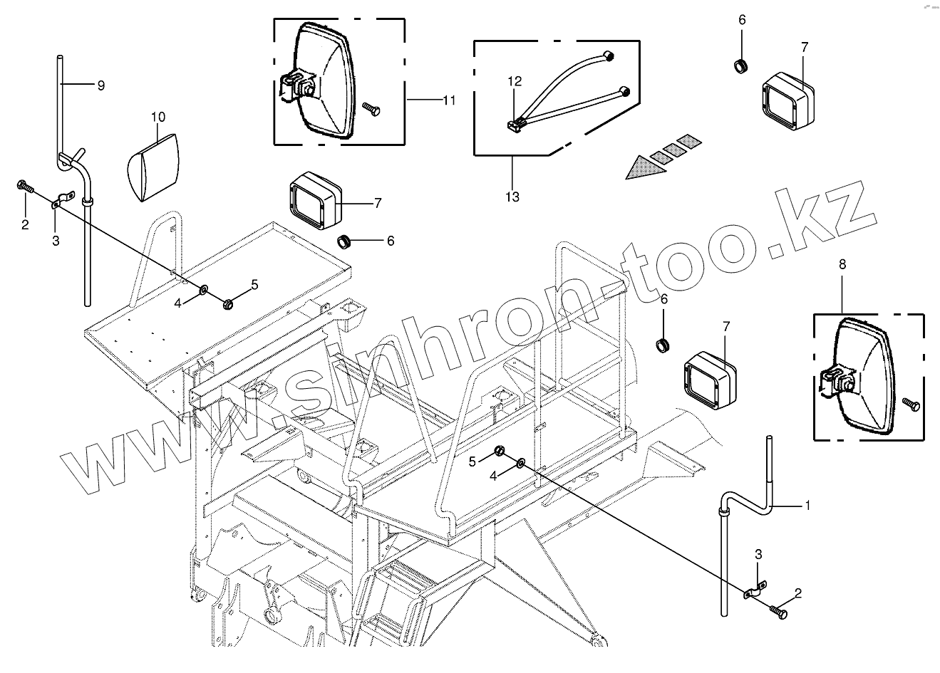 Каталог запасных частей к технике: KRONE BIG-M-II. Rear view mirror/Work light