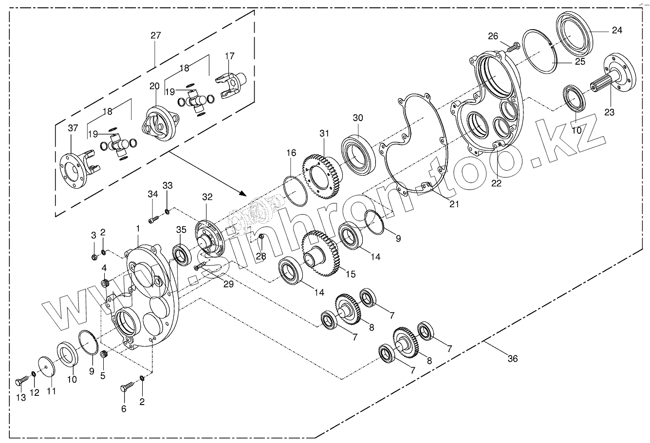 Каталог запасных частей к технике: KRONE BIG-M-II. Gearbox - front/lateral CRI
