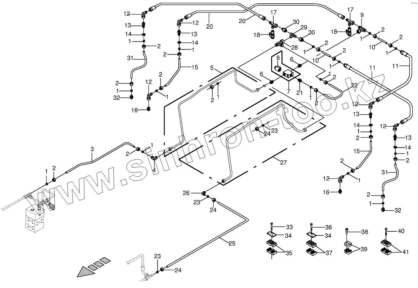 Каталог запасных частей к технике: KRONE BIG-M-II. Hydr.ground drive/pressure oil line - rear