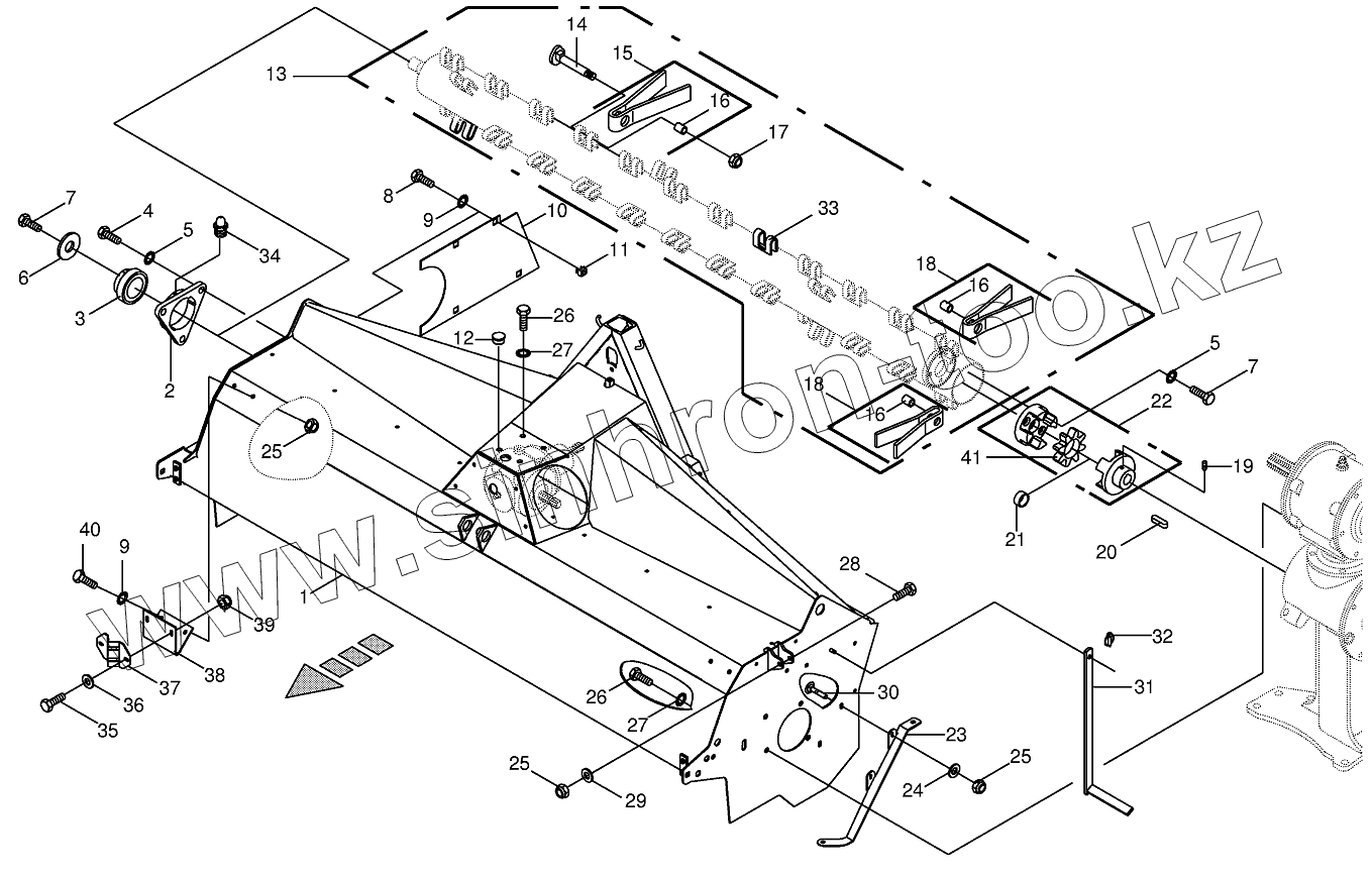 Каталог запасных частей к технике: KRONE BIG-M-II. Tine conditioner housing/tine conditiner - front