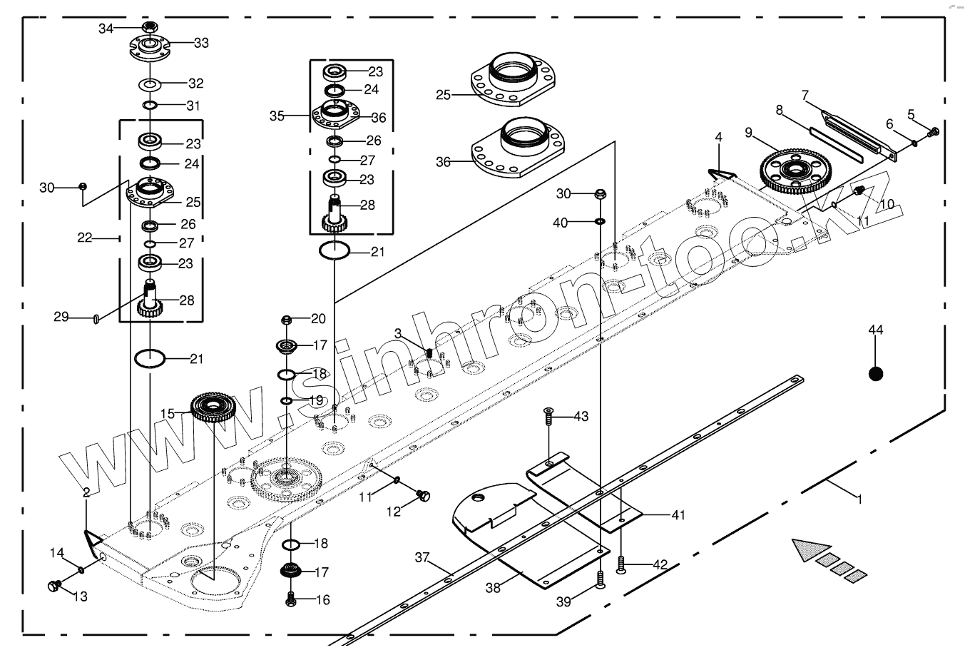 Каталог запасных частей к технике: KRONE BIG-M-II. Cutter bar with bearings 602801 - 702000