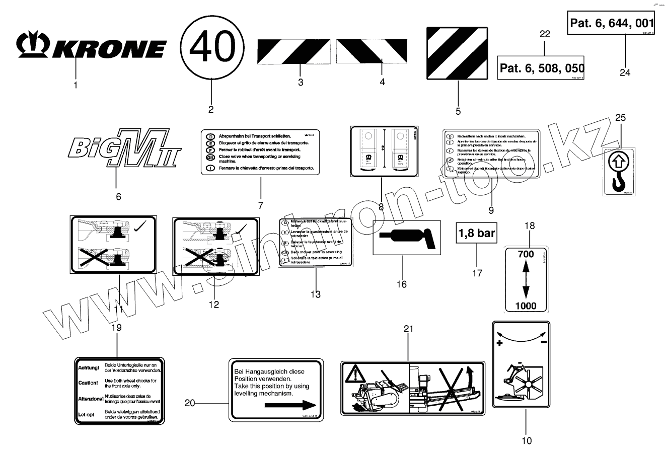 Каталог запасных частей к технике: KRONE BIG-M-II. General information labels