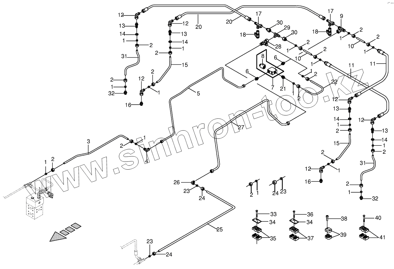 Каталог запасных частей к технике: KRONE BIG-M-II. Hydr.ground drive/pressure oil line - rear