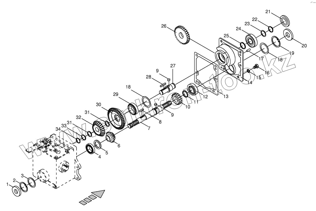 Каталог запасных частей к технике: KRONE BIG-M-II. Main gearbox and driving shaft-lateral