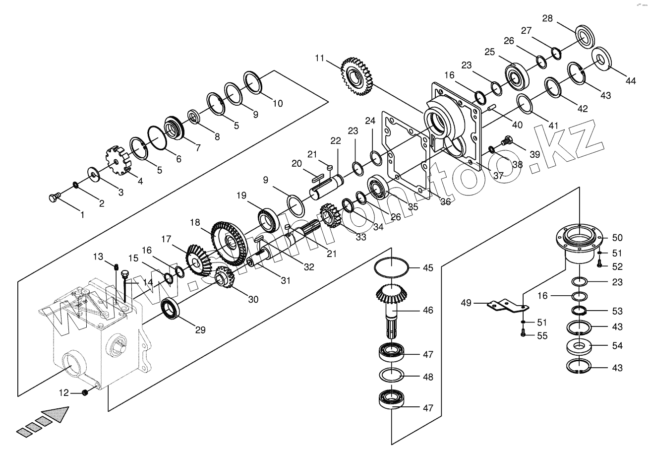 Каталог запасных частей к технике: KRONE BIG-M-II. Main gearbox and driving shaft-lateral