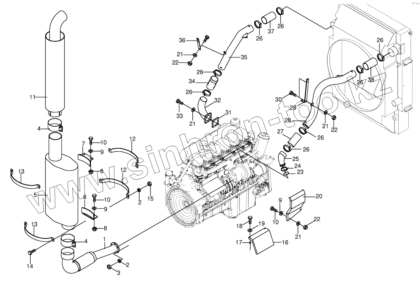 Каталог запасных частей к технике: KRONE BIG-M-II. Silencer / Charge air tubes