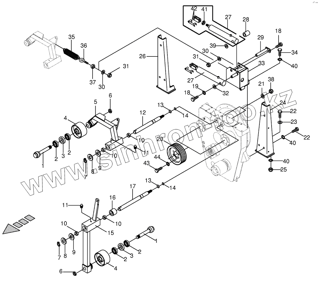 Каталог запасных частей к технике: KRONE BIG-M-II. Tensioning device on central gearbox