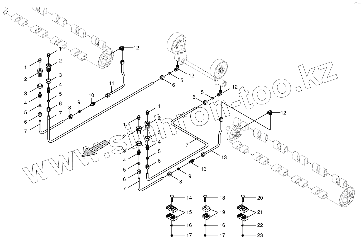 Каталог запасных частей к технике: KRONE BIG-M-II. Tine conditioner Lubricating line CV
