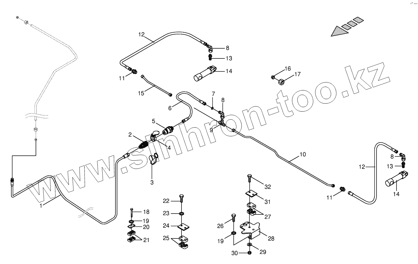 Hydraulic line-incl. nozzle disc cap, cutting ring-right