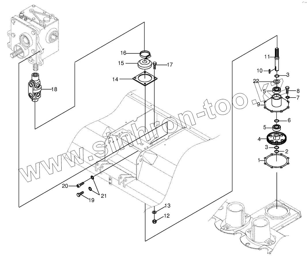 Каталог запасных частей к технике: KRONE BIG-M-II. Main gearbox / mower bar - lateral