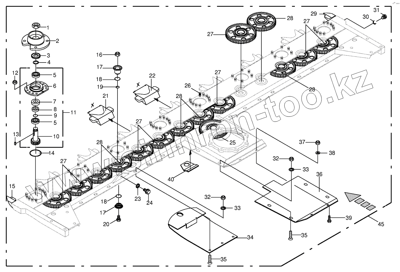 Каталог запасных частей к технике: KRONE BIG-M-II. Cutter bar with bearings-lateral