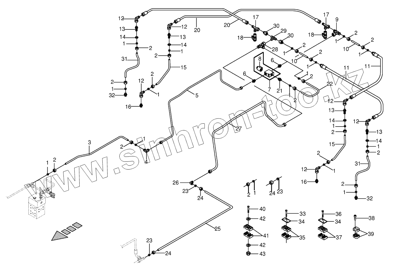 Каталог запасных частей к технике: KRONE BIG-M-II. Hydr.ground drive/pressure oil line - rear