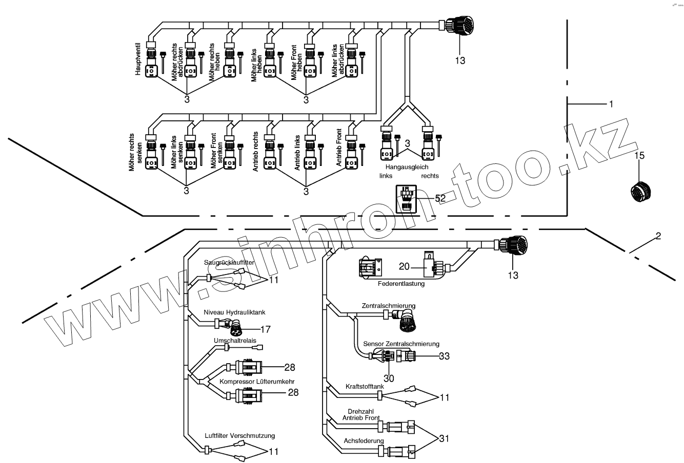Каталог запасных частей к технике: KRONE BIG-M-II. Wiring harness 2x7 / Wiring harnes 2x8