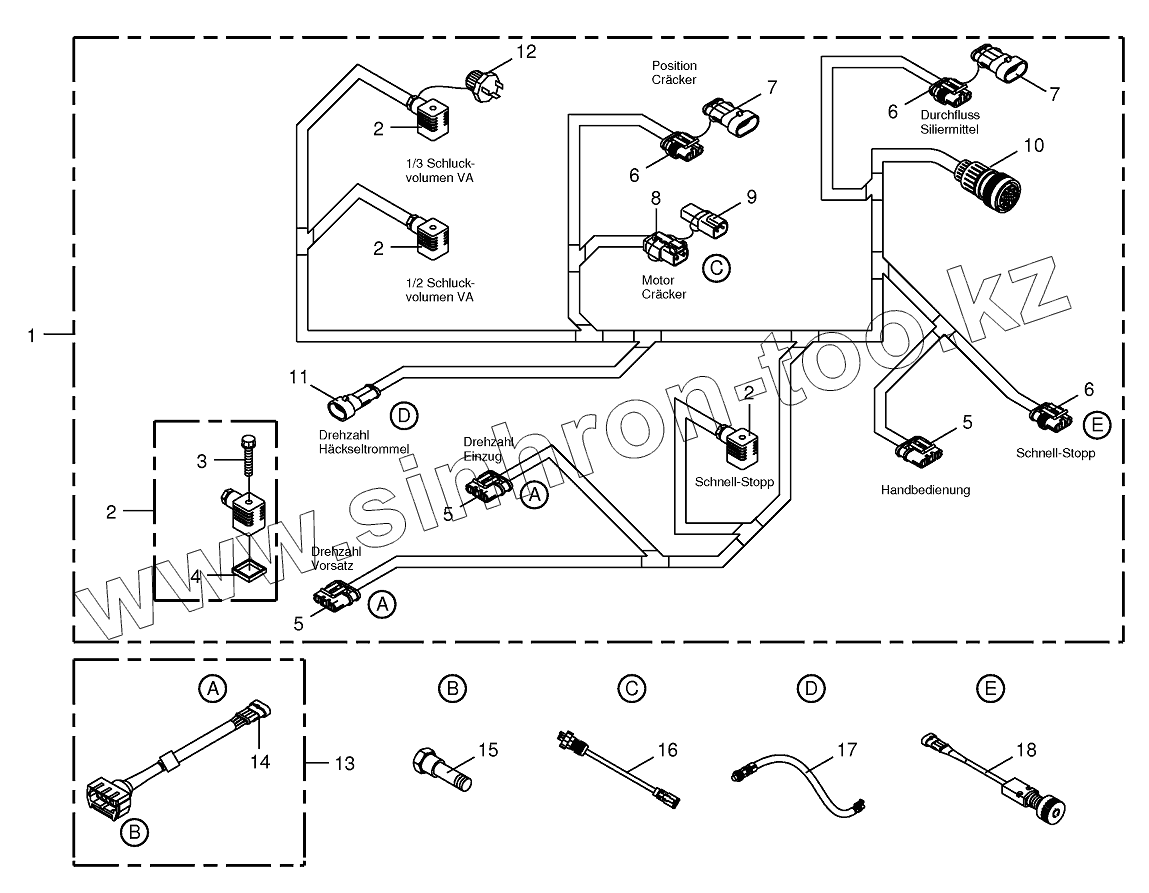 Каталог запасных частей к технике: KRONE BIG-X-1000. Wiring Harness-lateral left 701805-742661