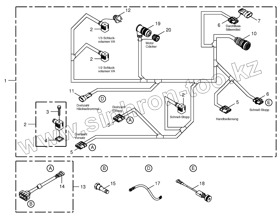 Каталог запасных частей к технике: KRONE BIG-X-1000. Wiring Harness-lateral left 742662-750480