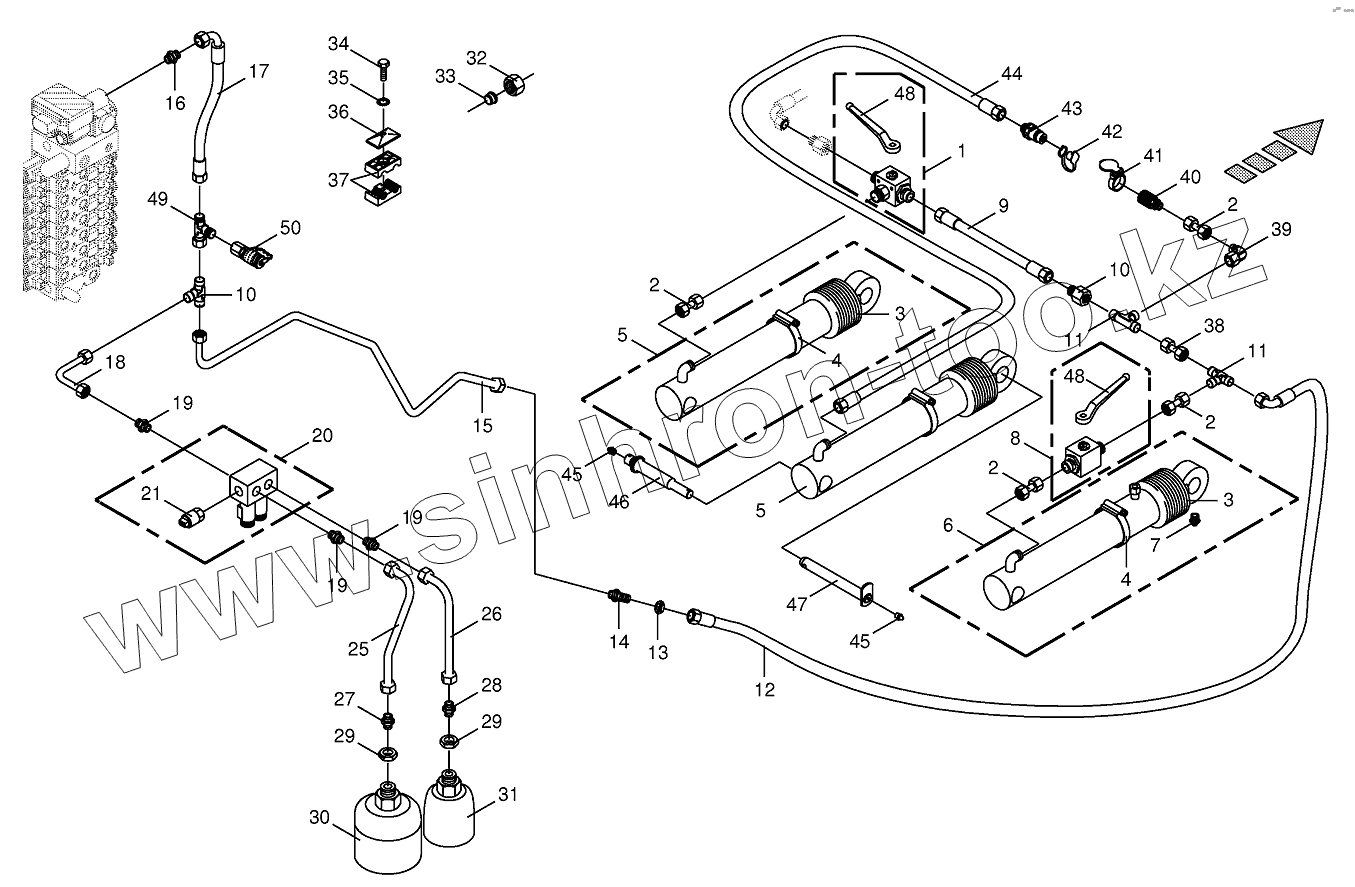 Каталог запасных частей к технике: KRONE BIG-X-1000. Hydraulics-lift 12/14 row