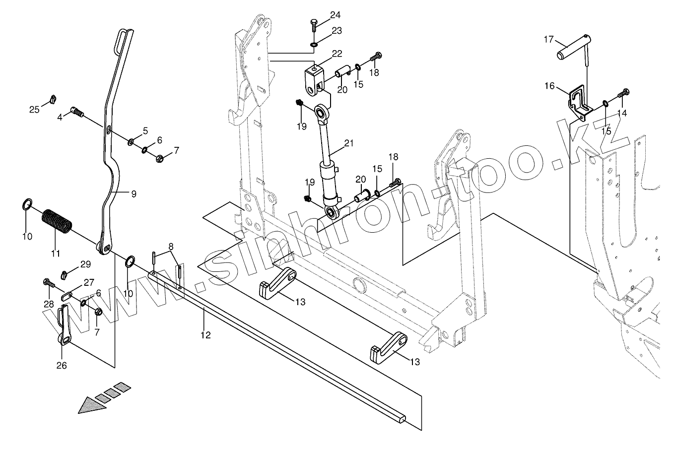 Каталог запасных частей к технике: KRONE BIG-X-1000. Lateral flotation system/Locking mech.