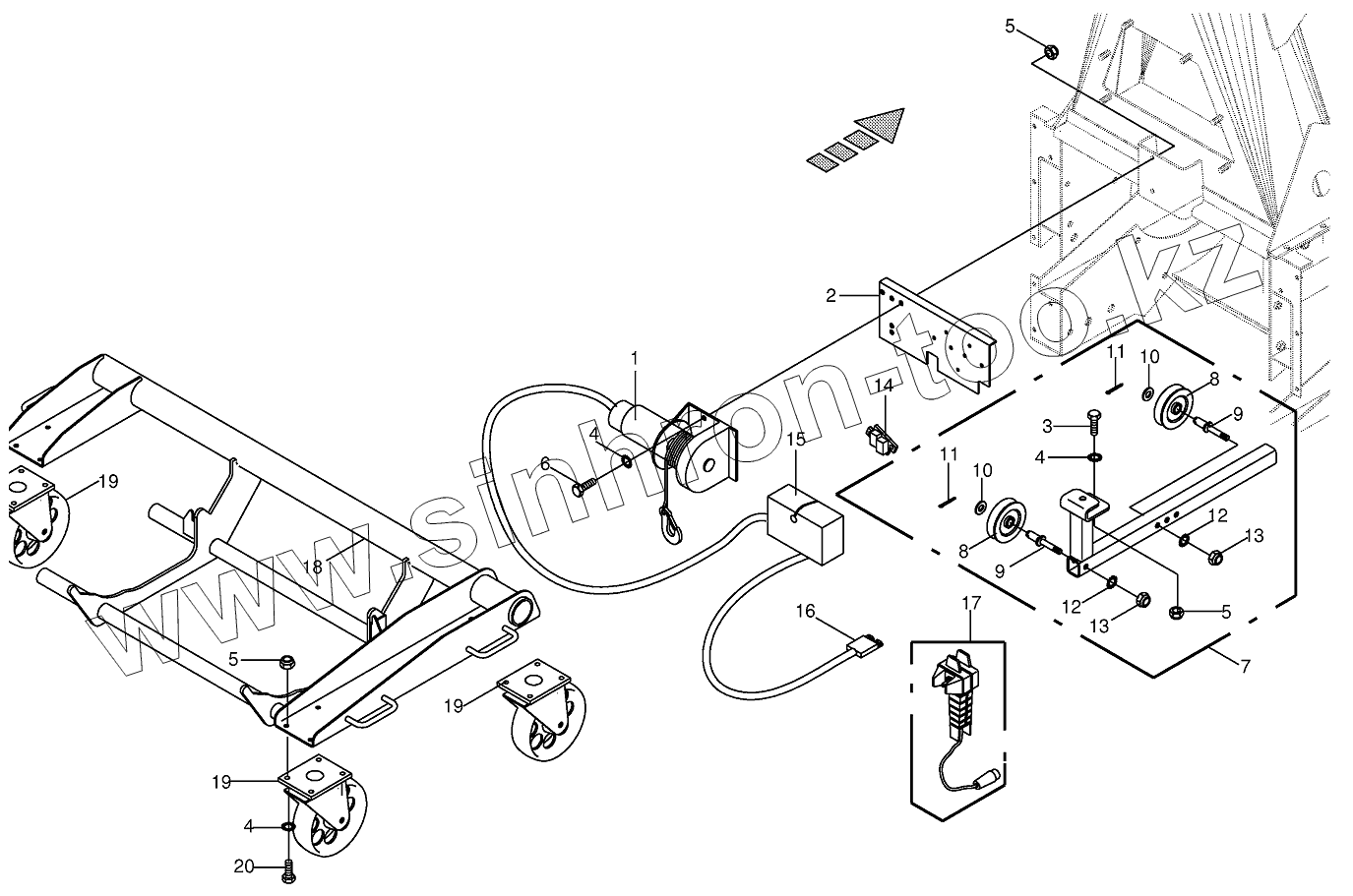 Каталог запасных частей к технике: KRONE BIG-X-1000. Rope winch/Installation car
