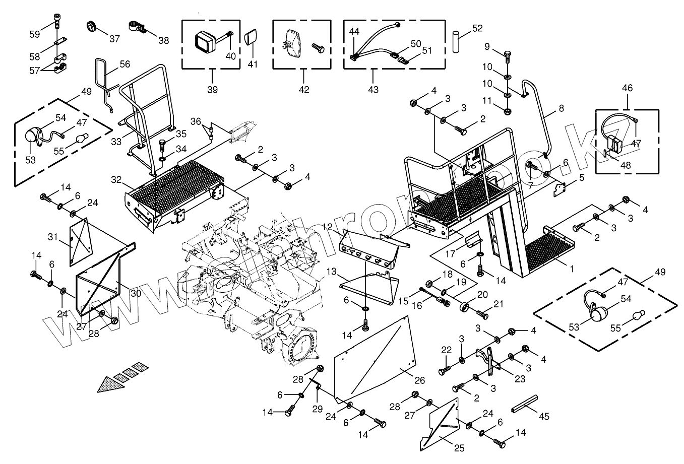 Каталог запасных частей к технике: KRONE BIG-X-1100. Cab access left/platform right