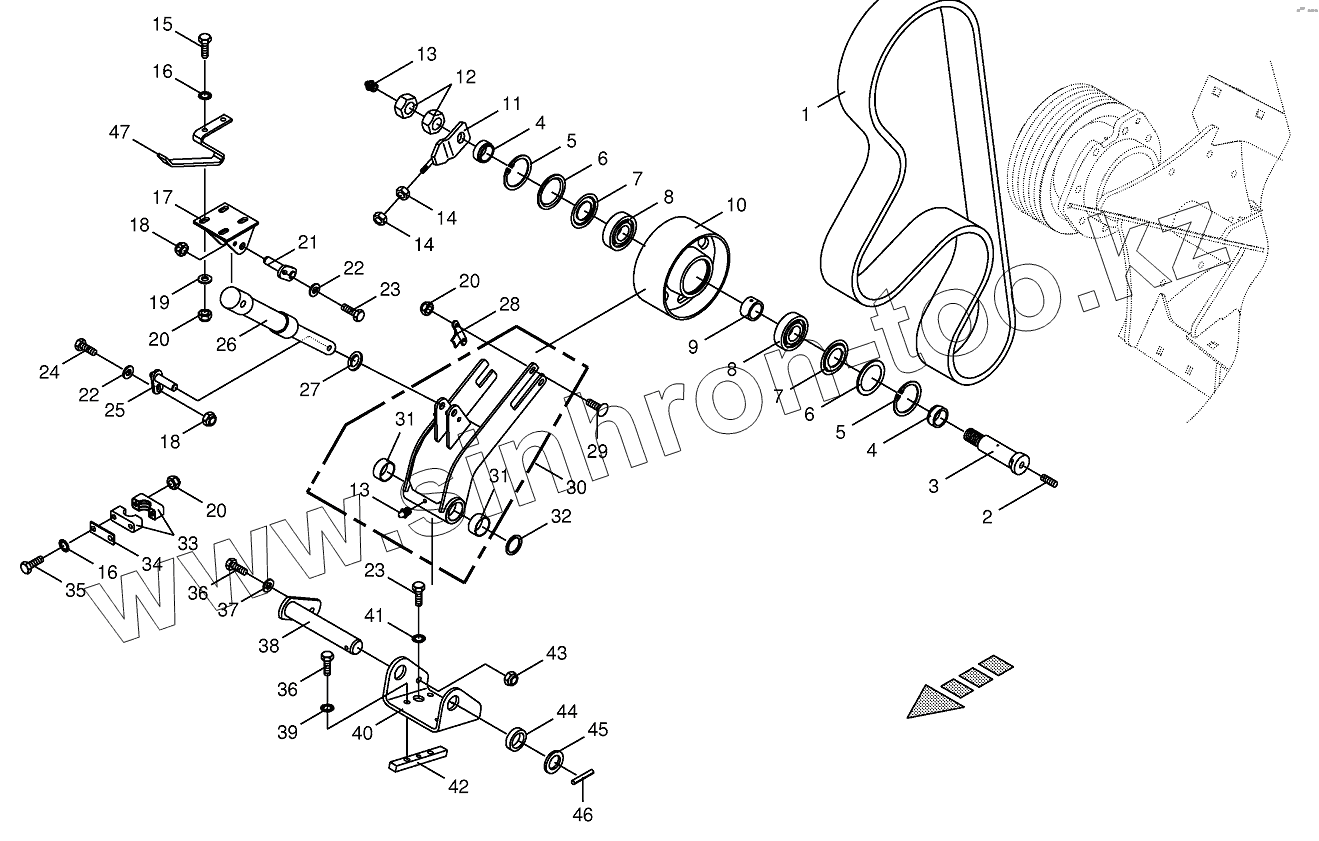Каталог запасных частей к технике: KRONE BIG-X-1100. Cracker drive/tensioning device 783000-793339