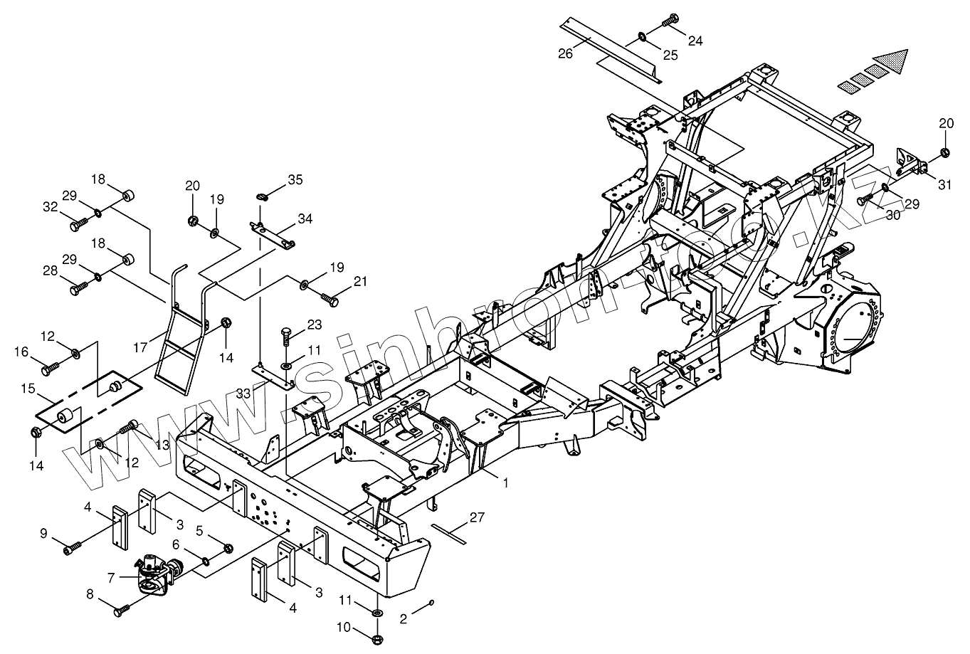 Каталог запасных частей к технике: KRONE BIG-X-1100. Frame/trailer hitch/ascending ladder