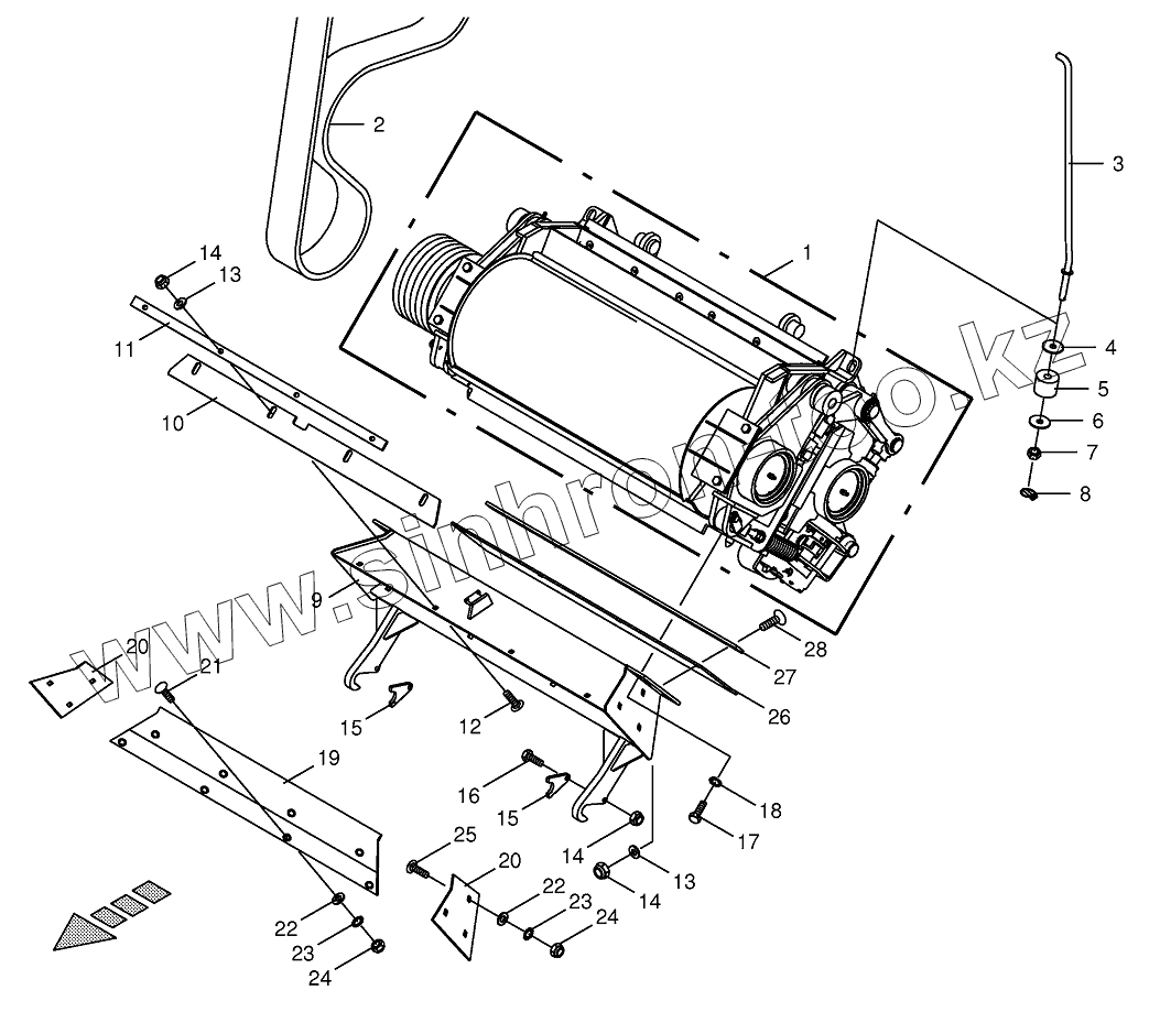 Каталог запасных частей к технике: KRONE BIG-X-1100. Grain conditioner cpl./cracker duct-spring-mounted