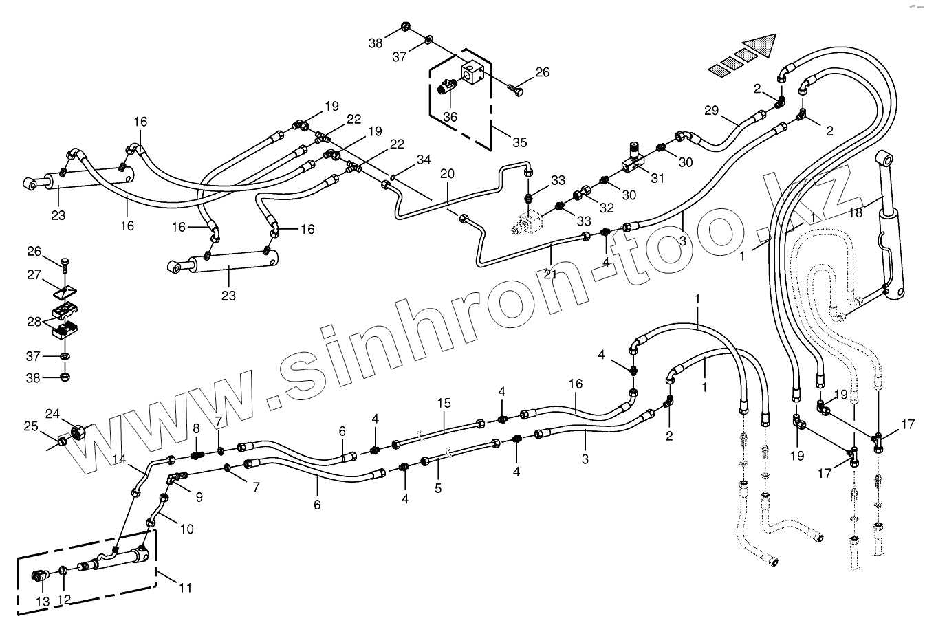 Каталог запасных частей к технике: KRONE BIG-X-1100. Hydraulics-discharge chute-14-row
