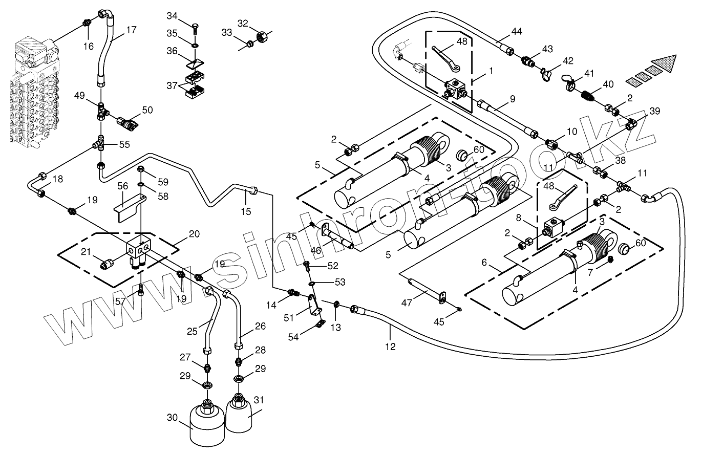 Каталог запасных частей к технике: KRONE BIG-X-1100. Hydraulics-lift 12/14 row