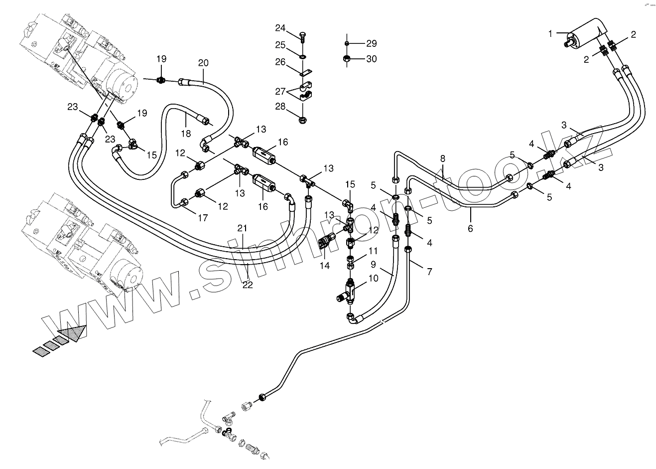 Каталог запасных частей к технике: KRONE BIG-X-1100. Hydraulics-sieve drive
