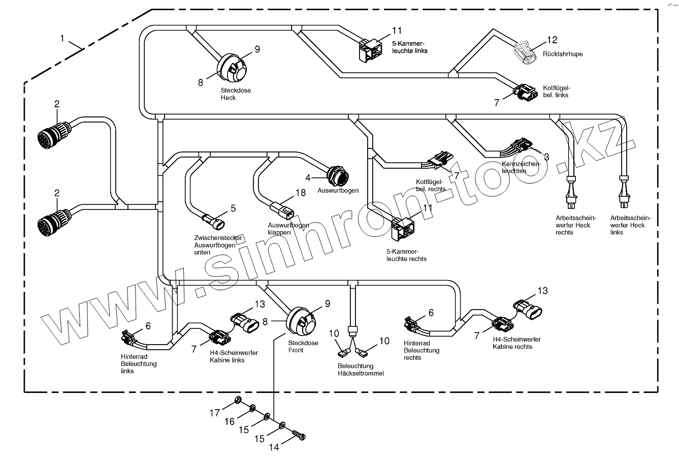 Каталог запасных частей к технике: KRONE BIG-X-1100. Wiring Harness-lighting