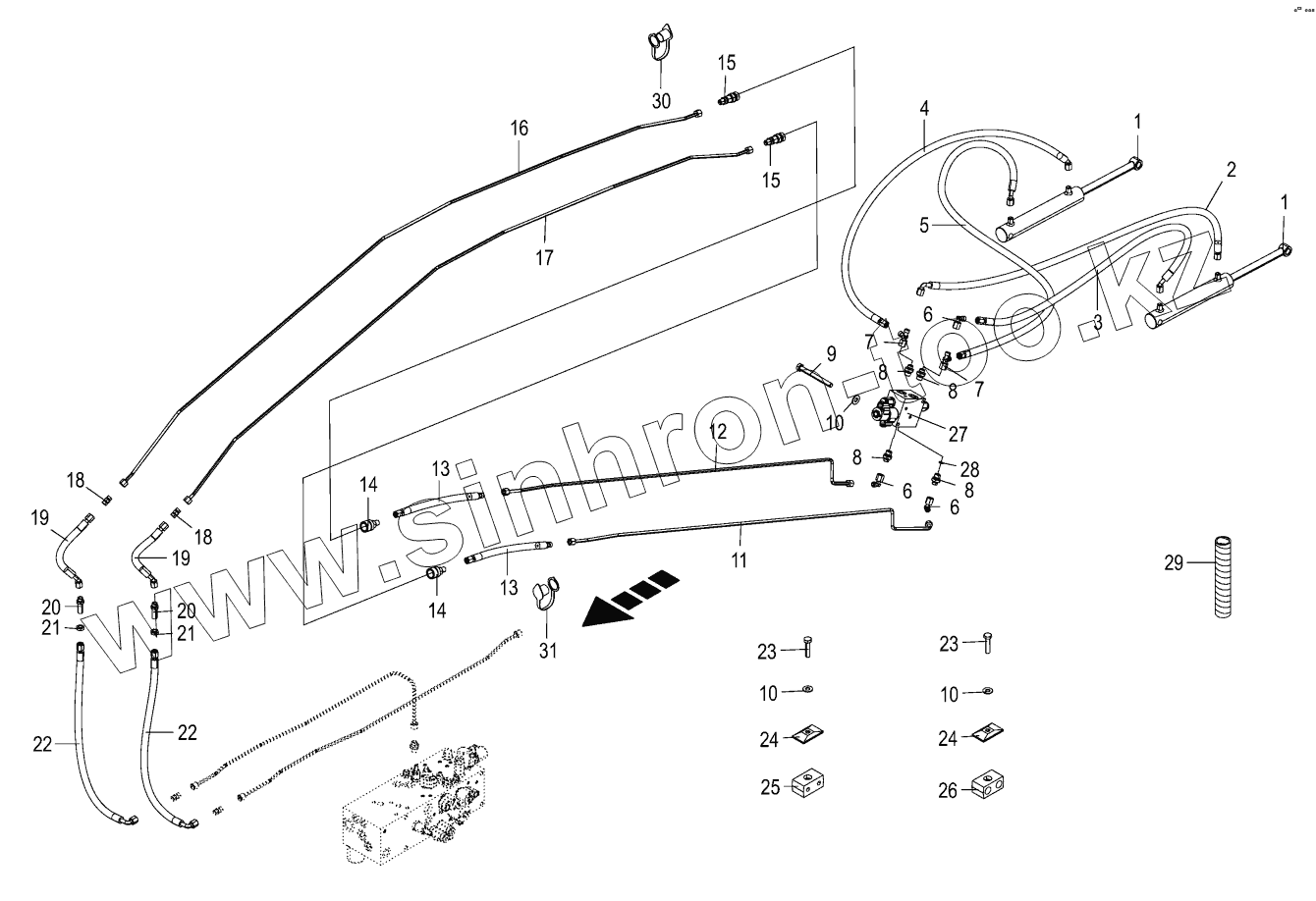 Каталог запасных частей к технике: KRONE BIG-X-480. Hydraulics - discharge chute - 12/14-row
