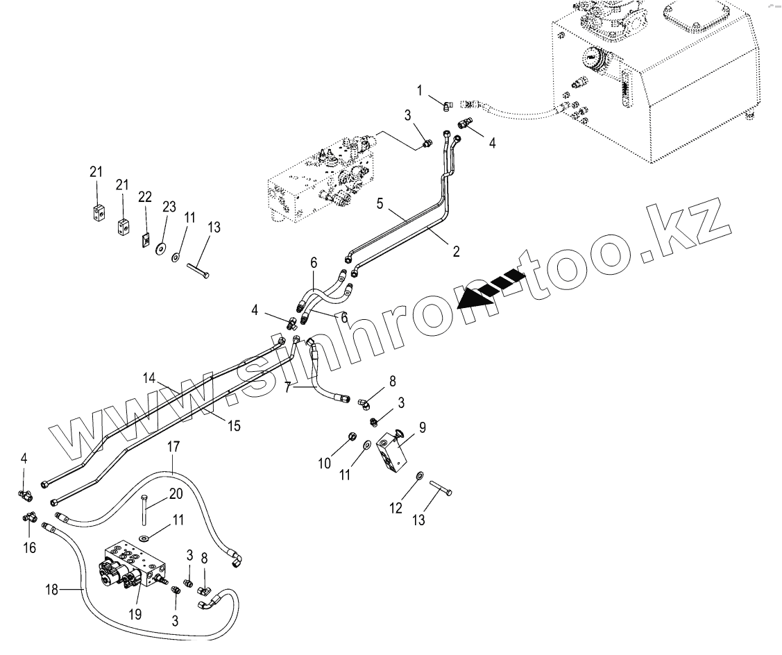 Каталог запасных частей к технике: KRONE BIG-X-480. Hydraulics - front block
