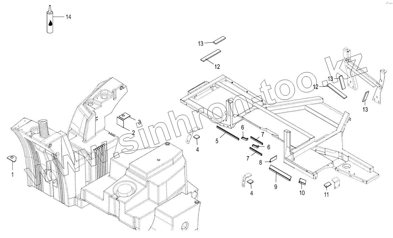 Каталог запасных частей к технике: KRONE BIG-X-480. Diesel fuel tank -bonded rubber plate