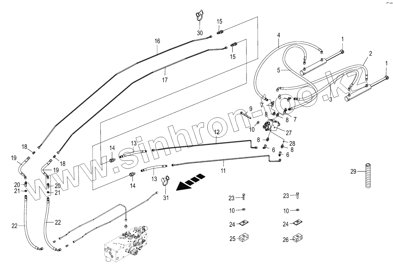 Каталог запасных частей к технике: KRONE BIG-X-480. Hydraulics - discharge chute - 12/14-row