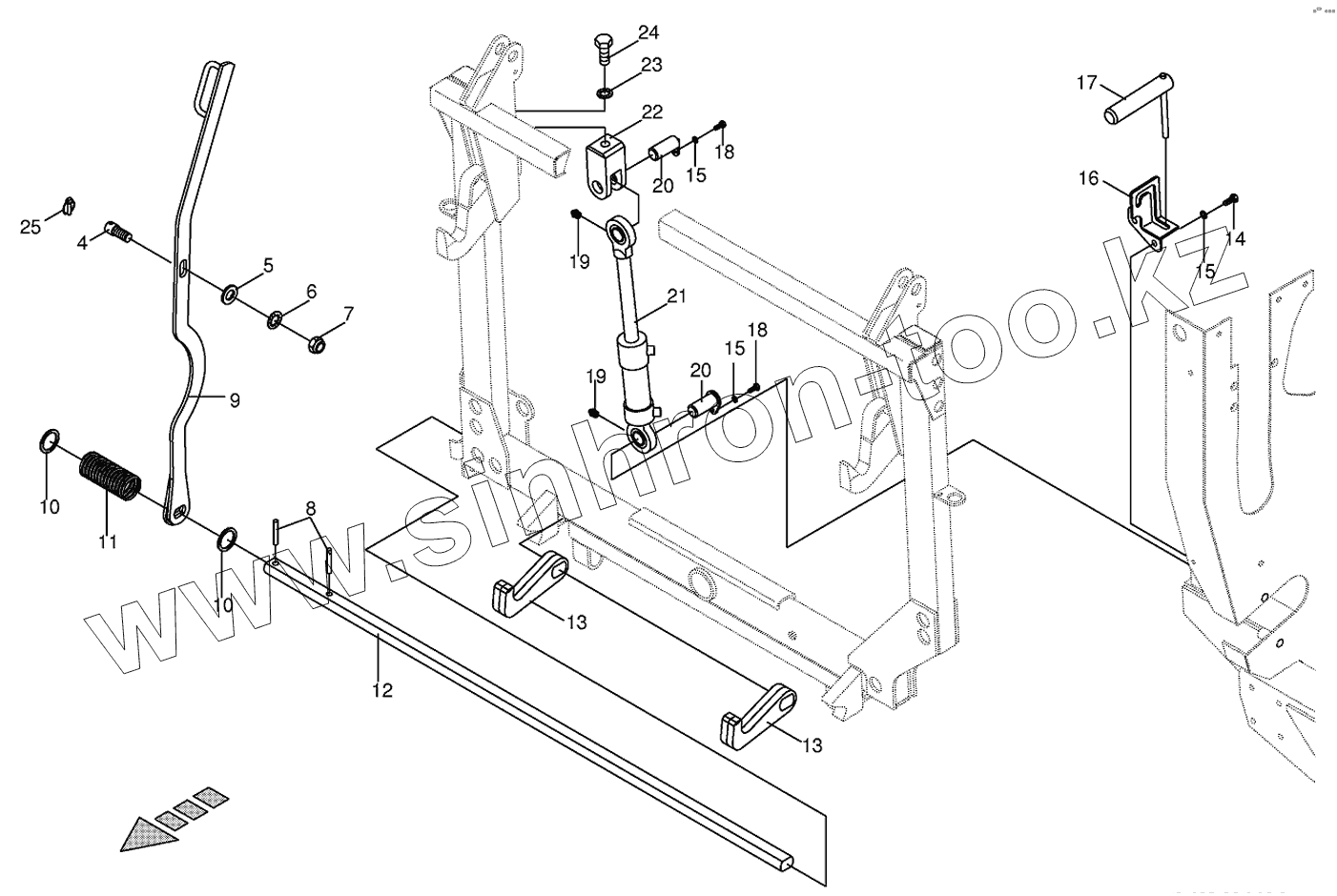 Каталог запасных частей к технике: KRONE BIG-X-500. Lateral flotation system/Locking mech.