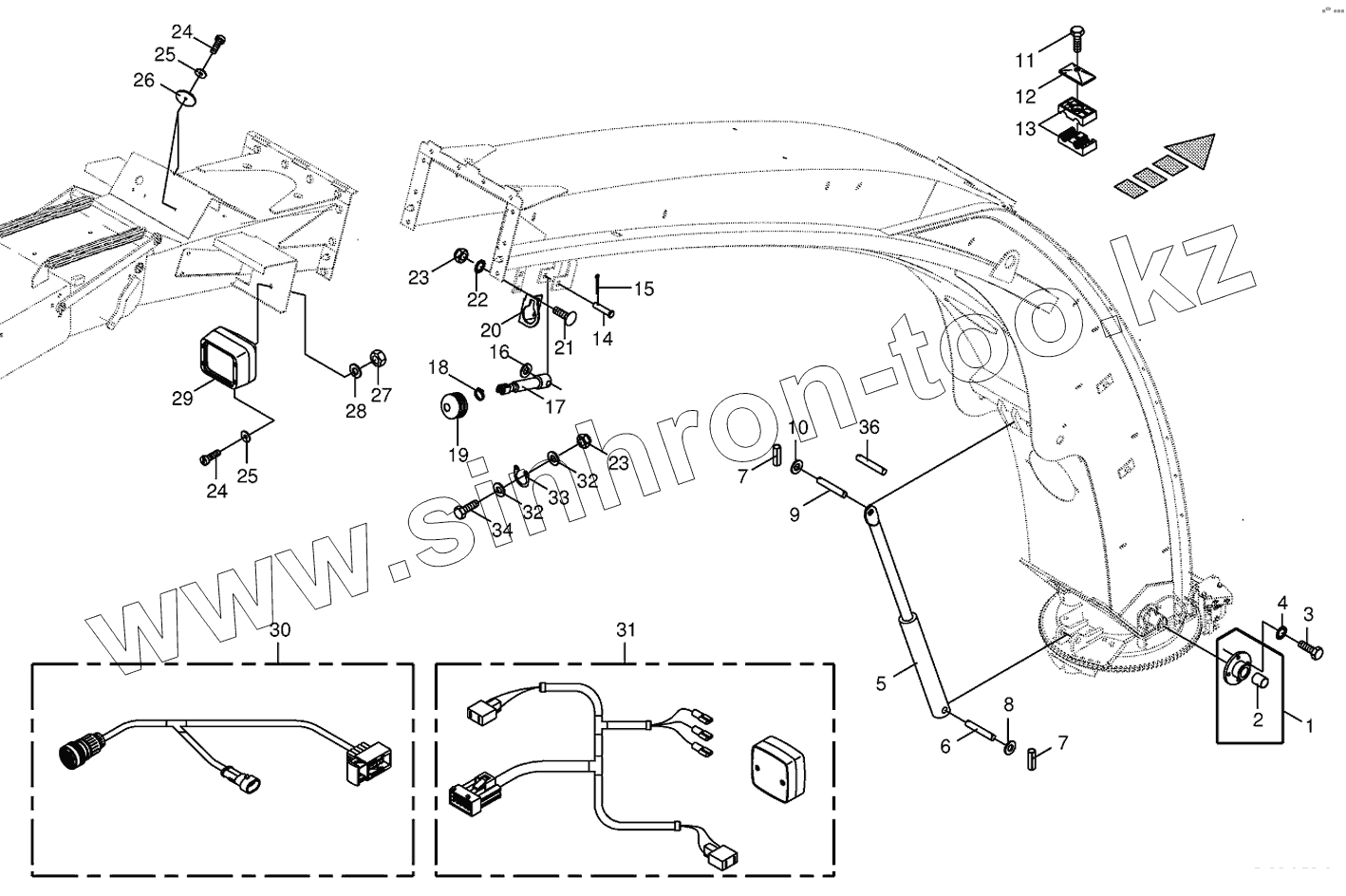 Каталог запасных частей к технике: KRONE BIG-X-500. Upper discharge chute-mounting parts