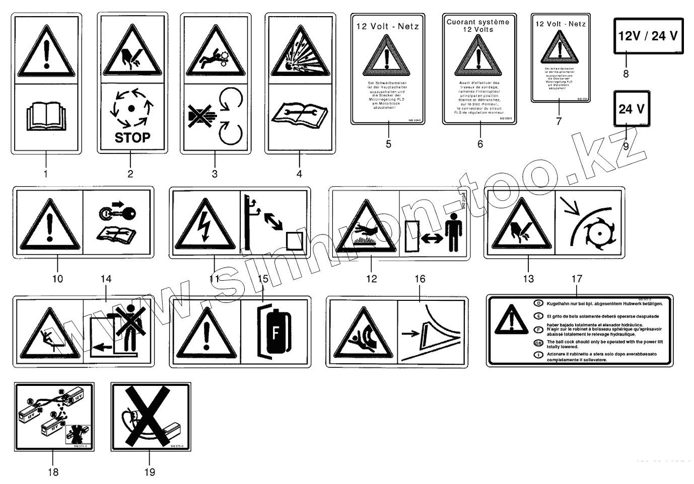 Каталог запасных частей к технике: KRONE BIG-X-500. Warning signs