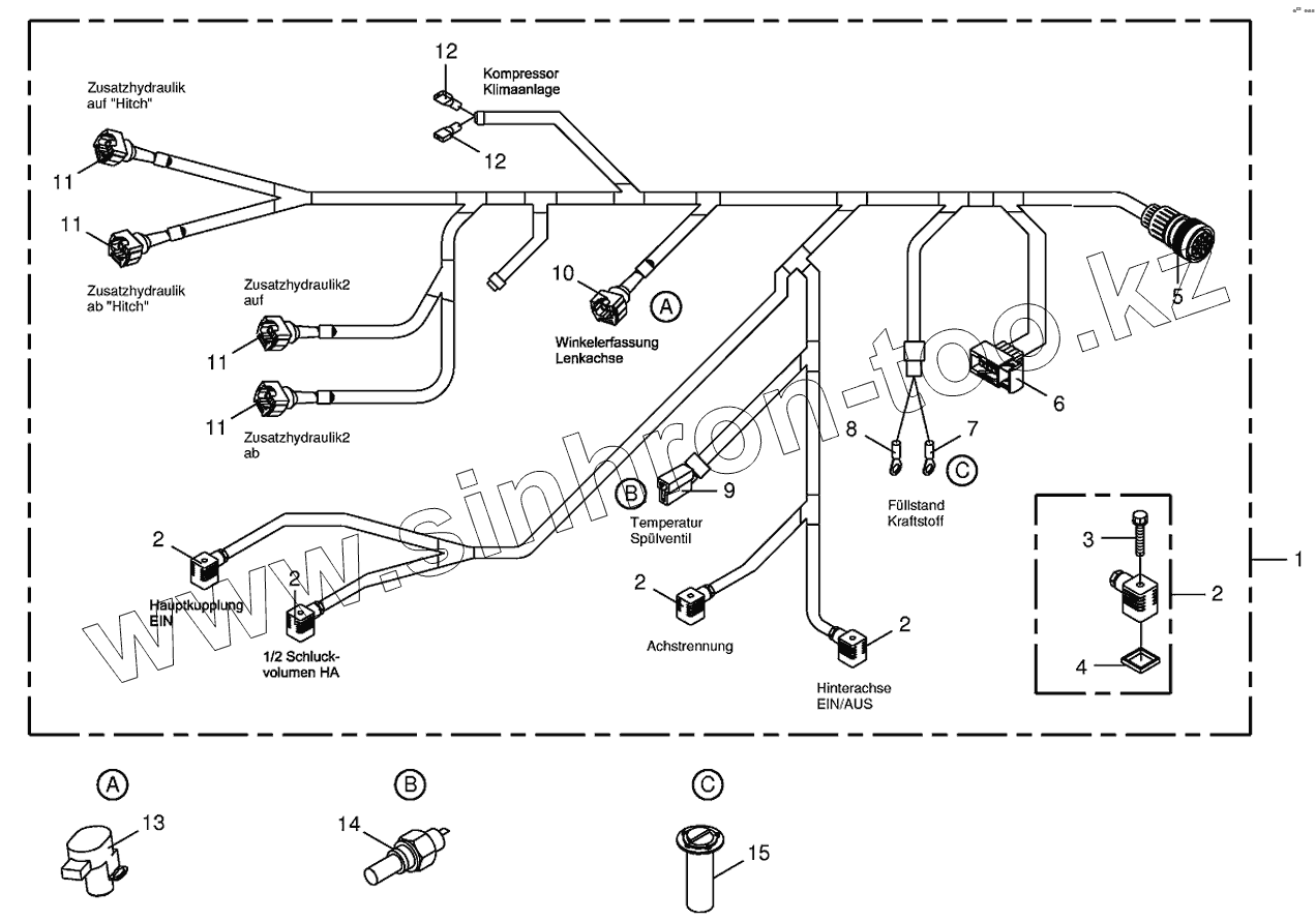Каталог запасных частей к технике: KRONE BIG-X-500. Wiring Harness-rear/drive valve