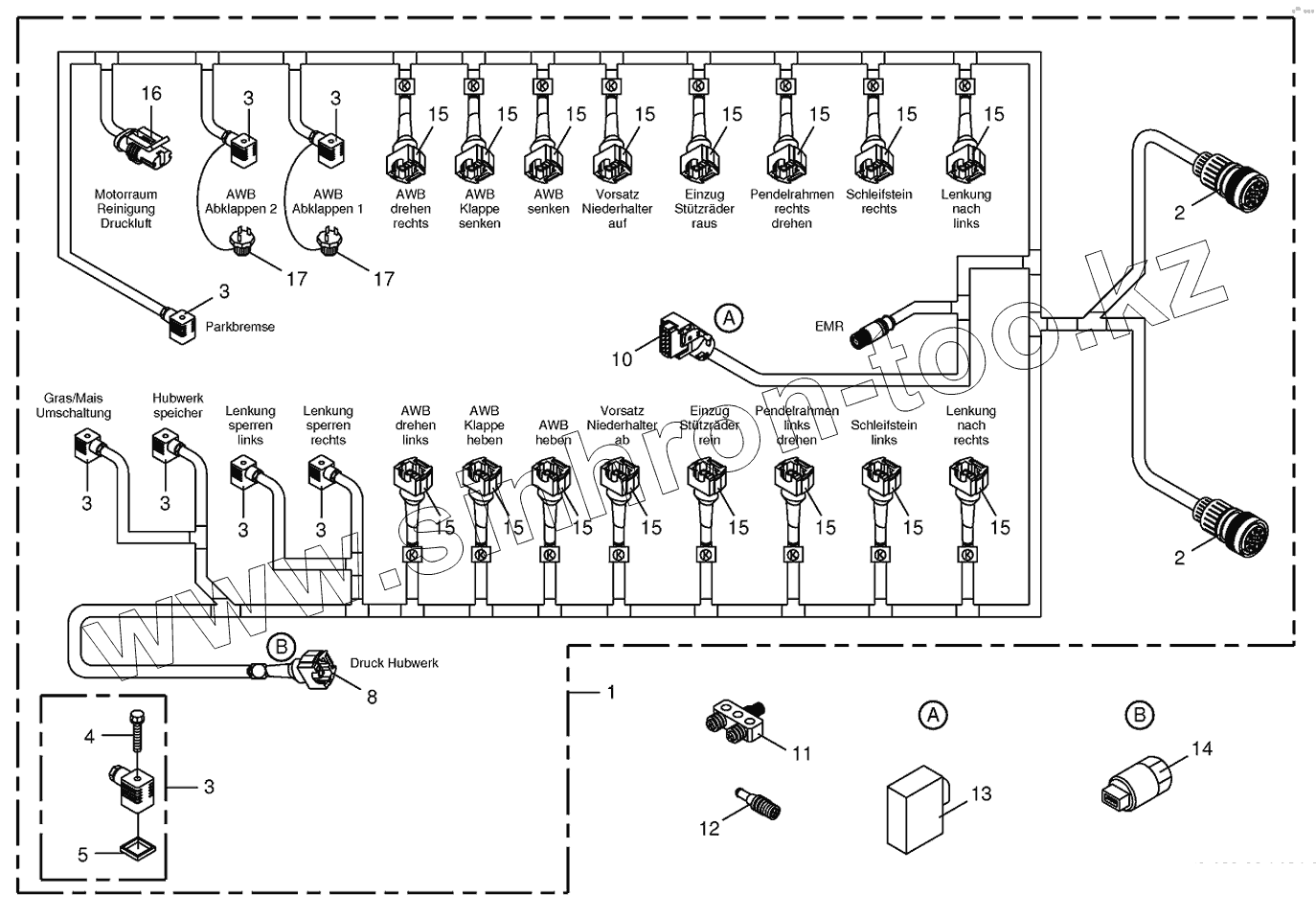 Каталог запасных частей к технике: KRONE BIG-X-500. Wiring Harness-valve block