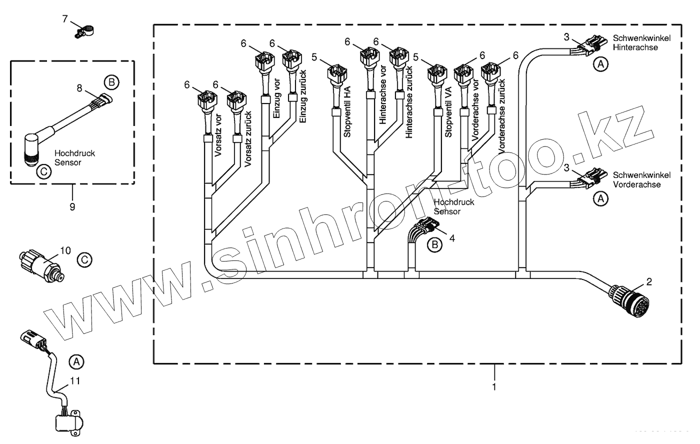 Каталог запасных частей к технике: KRONE BIG-X-500. Wiring loom-hydraulic pumps