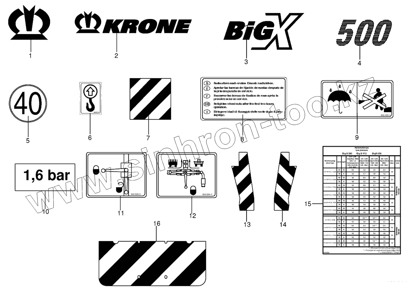 Каталог запасных частей к технике: KRONE BIG-X-500. General information labels