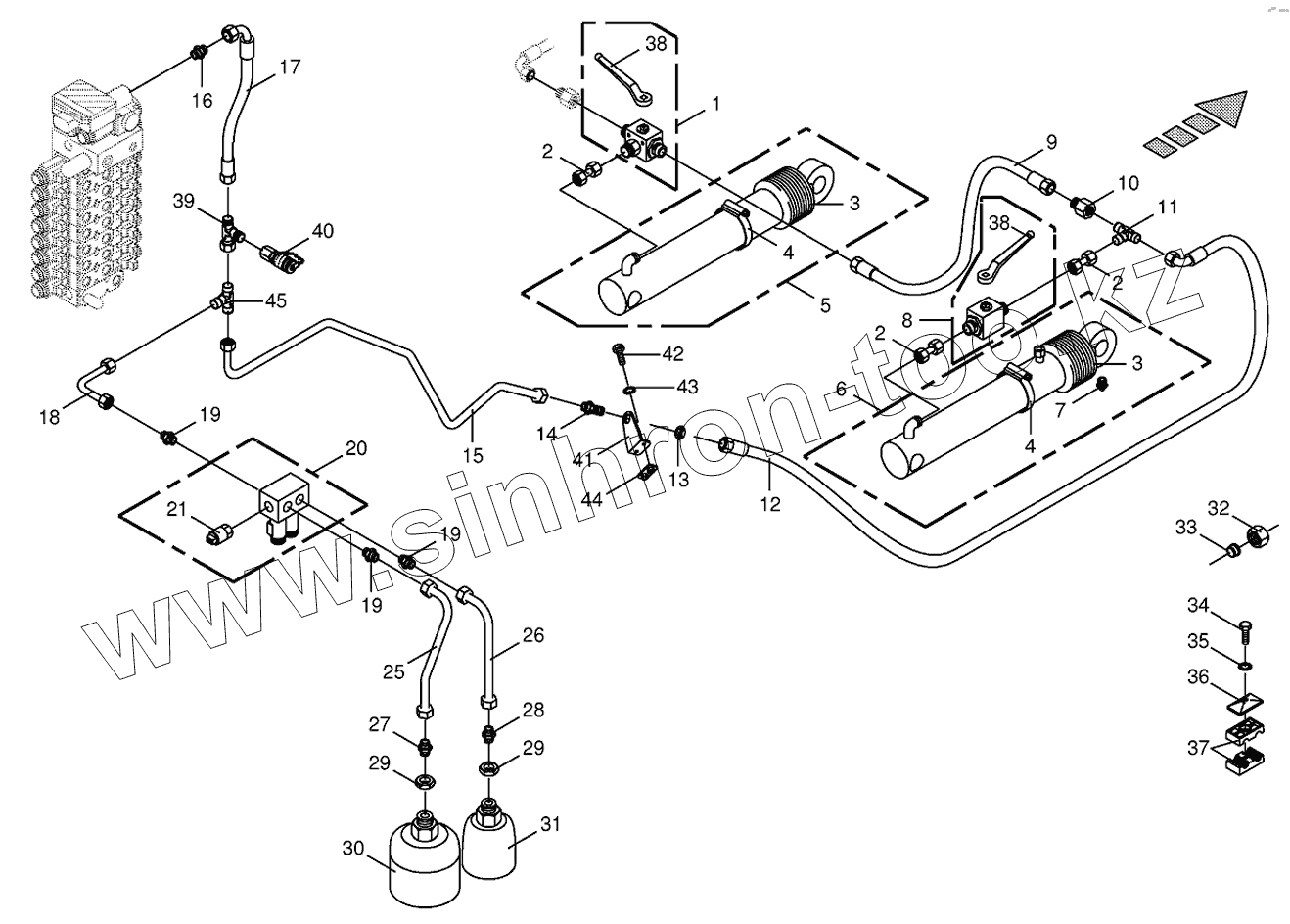 Каталог запасных частей к технике: KRONE BIG-X-500. Hydraulics-lift