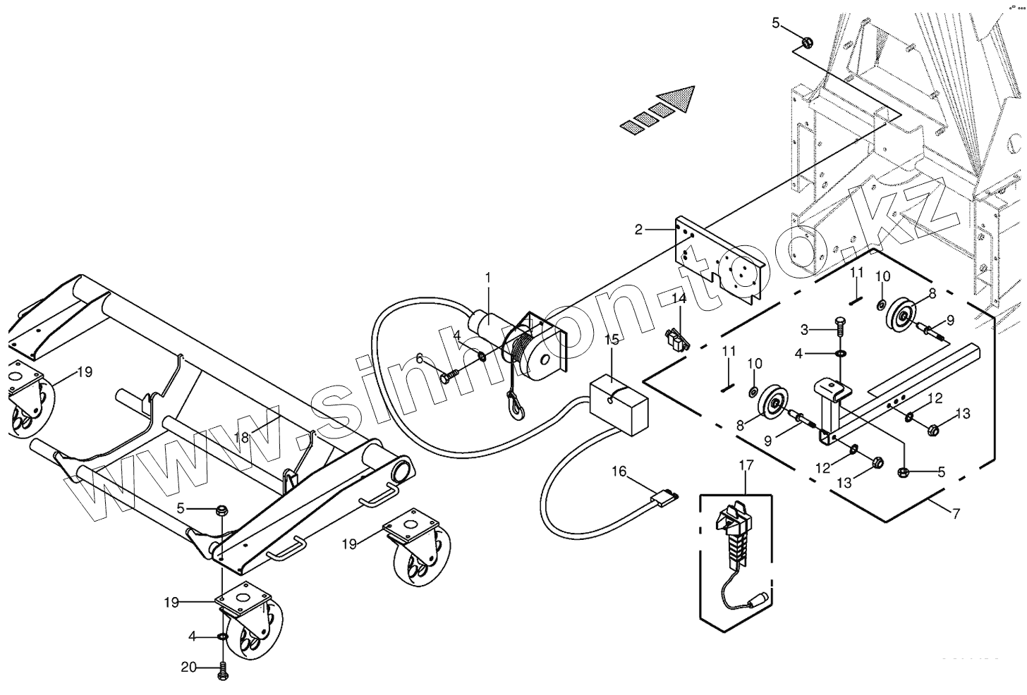 Каталог запасных частей к технике: KRONE BIG-X-500. Rope winch/Installation car