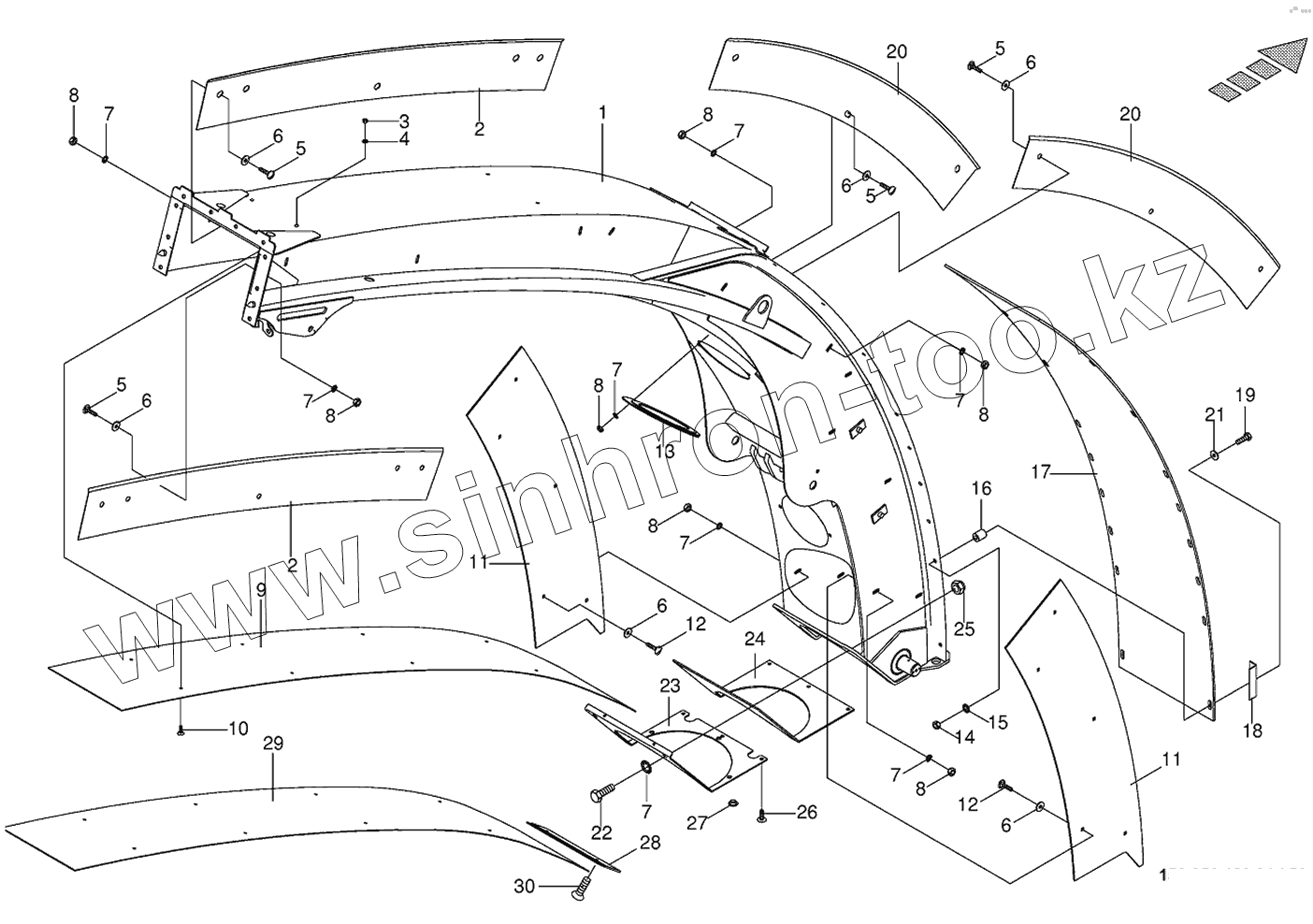 Каталог запасных частей к технике: KRONE BIG-X-500. Upper discharge chute with wear plates