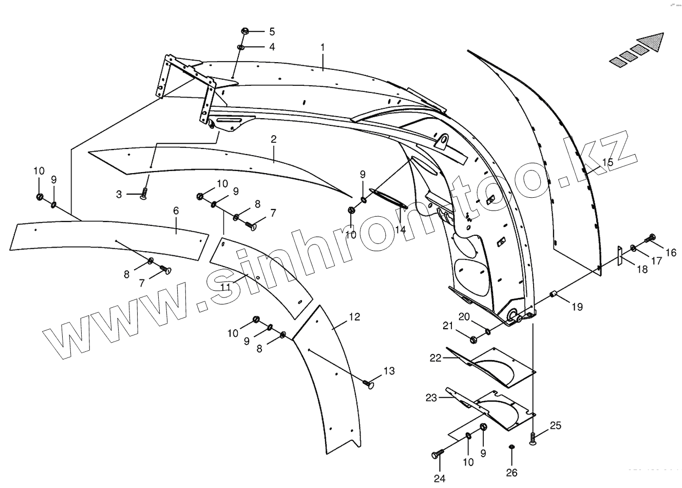 Каталог запасных частей к технике: KRONE BIG-X-500. Upper discharge chute with wear plates