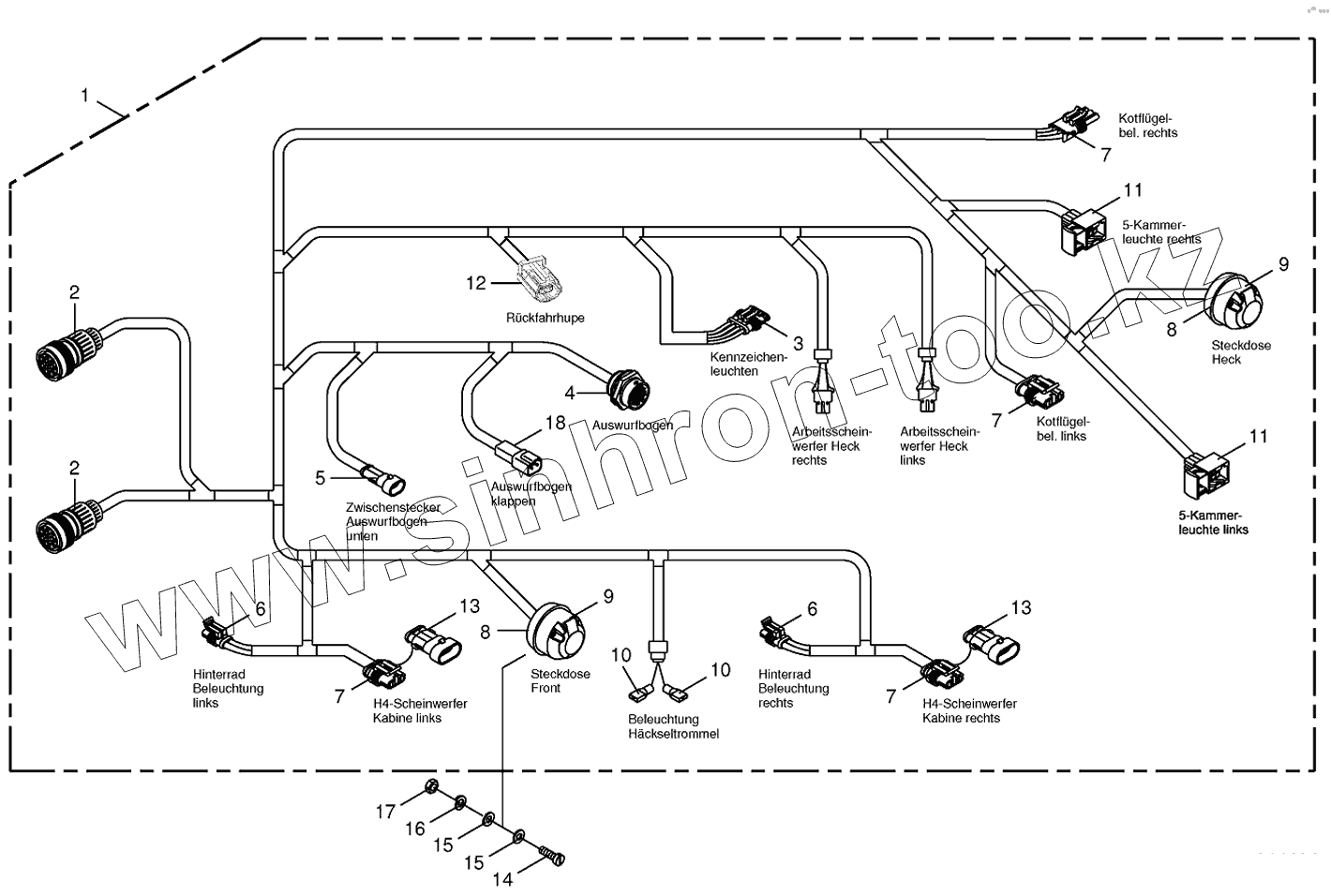 Каталог запасных частей к технике: KRONE BIG-X-500. Wiring Harness-lighting