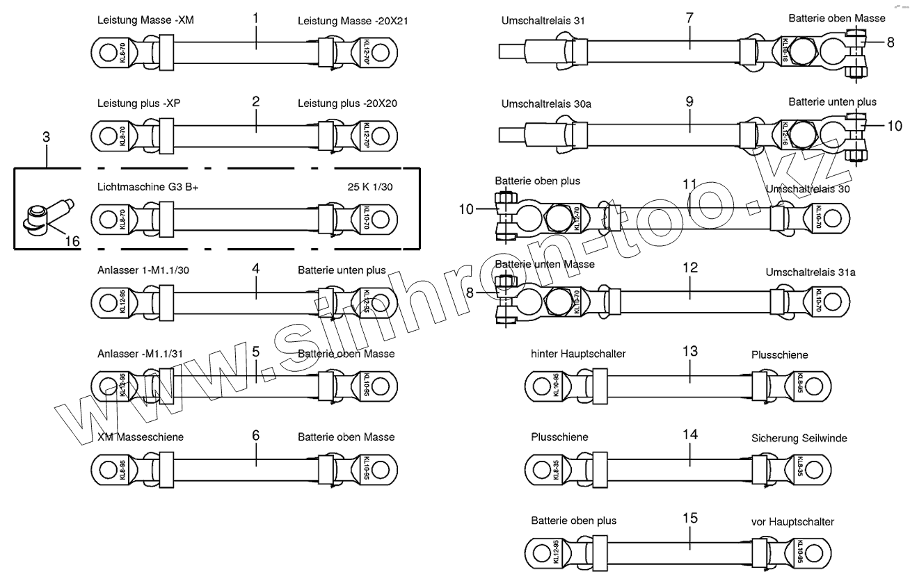 Каталог запасных частей к технике: KRONE BIG-X-500. Battery and ground cable