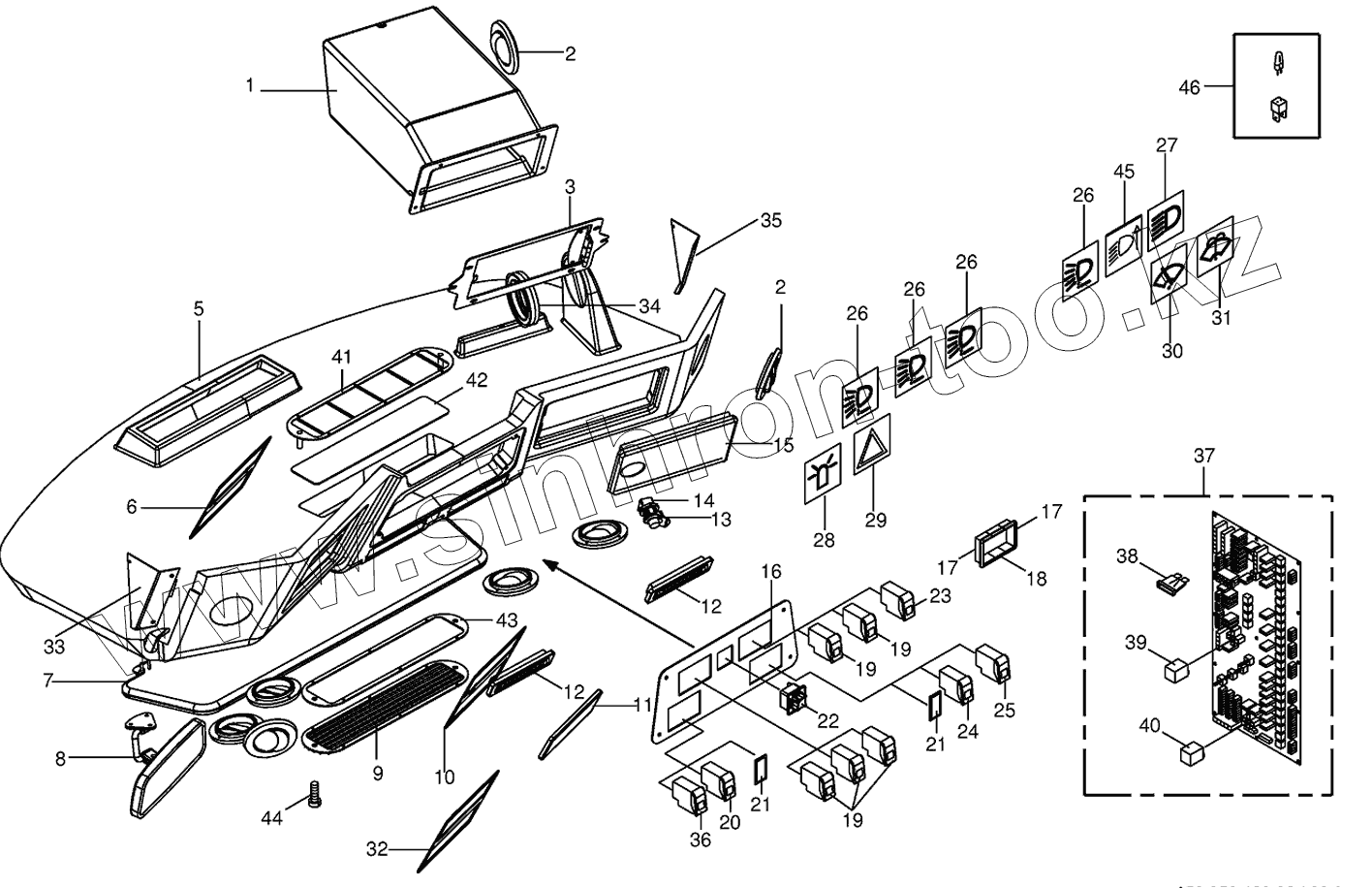 Каталог запасных частей к технике: KRONE BIG-X-500. Cab-control panel (roof)/circuit board