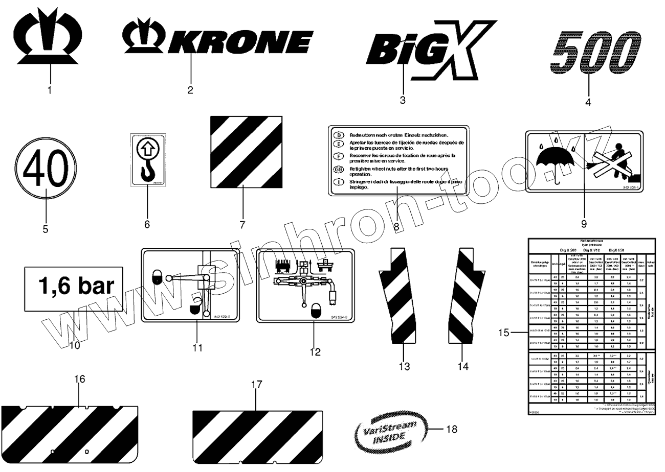 Каталог запасных частей к технике: KRONE BIG-X-500. General information labels
