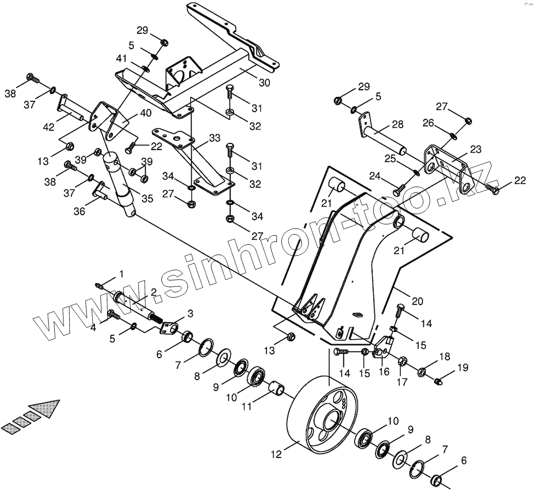 Каталог запасных частей к технике: KRONE BIG-X-500. Tensioning device-main drive